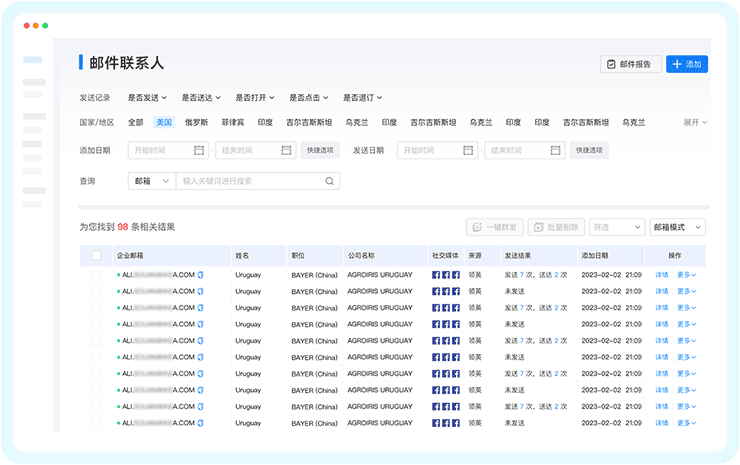 dcbox小金库外贸通内置自动发送系统,根据需求智能分析投递线路,抵达率达90%以上;联系人管理、重要度匹配、无效邮箱过滤等功能,触达、跟进更高效